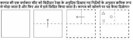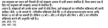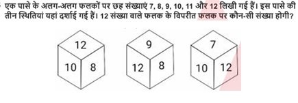 Delhi Police Constable Reasoning Mock Test September 30, 2025 by Sarkari Form Team WhatsApp Group Join Now Telegram Group Join Now 184 Delhi Police Constable Reasoning Mock Test 1 / 20 1. D A B C 2 / 20 2. पनीर : गाय :: स्वेटर : ? ऊंट भेड़ रेशम कपास 3 / 20 3. किसी घड़ी में यदि 3:35 बजे हैं, तो सुइयों के बीच का कोण क्या होगा? 35 डिग्री 47.5 डिग्री 42.5 डिग्री 57.5 डिग्री 4 / 20 4. F D C N 5 / 20 5. 10 8 9 11 6 / 20 6. 51 और 78 के बीच सभी अभा सं ाओं के गुणनफल का इकाई अंक ा है? 2 6 3 7 7 / 20 7. 32 28 20 24 8 / 20 8. 11, 9, 20, 29, 49, ? 82 78 58 62 9 / 20 9. यदि कुछ कोड में PENCIL = RDPEKN, तो PAPER = ? RPPEA RPAEP RPRAE EPRAP 10 / 20 10. एक ही पासे की तीन अलग-अलग स्थितियाँ दी हैं। '3' के विपरीत कौन सा अंक होगा? 6 4 5 2 11 / 20 11. निम्नलिखित में से कौन-सा शब्द "RESPIRATION" में से नहीं बन सकता? RIDER PIRATE SINE POSTER 12 / 20 12. 13 11 10 9 13 / 20 13. 1 3 2 4 14 / 20 14. C D B A 15 / 20 15. शतुरमुर्ग : पक्षी :: मगरमच्छ : ? सरीसृप सरीसृप जीव पानी 16 / 20 16. 3456 4600 3860 4608 17 / 20 17. (25,100,15) (17,77,9) (40,240,20) (50,385,15) 18 / 20 18. 200% 100% 300% 400% 19 / 20 19. यिद एक BOX ₹350 की LOSS पर ₹4,650 म बेचा गया, तो LOSS % कीिजए 7% 5% 8% 6% 20 / 20 20. सुबह 7 बजे का समय, 90 डिग्री पर कौन स्थित होगा? पश्चिम उत्तर दक्षिण पूर्व Your score is The average score is 33% LinkedIn Facebook Twitter VKontakte Restart quiz WhatsApp Group Join Now Telegram Group Join Now Floating WhatsApp Button